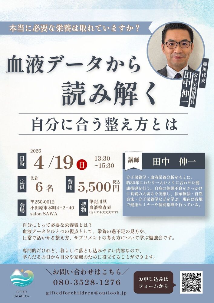 近年は約30年間にわたる食養学の経験と血液検査データの栄養分析 をもとに、